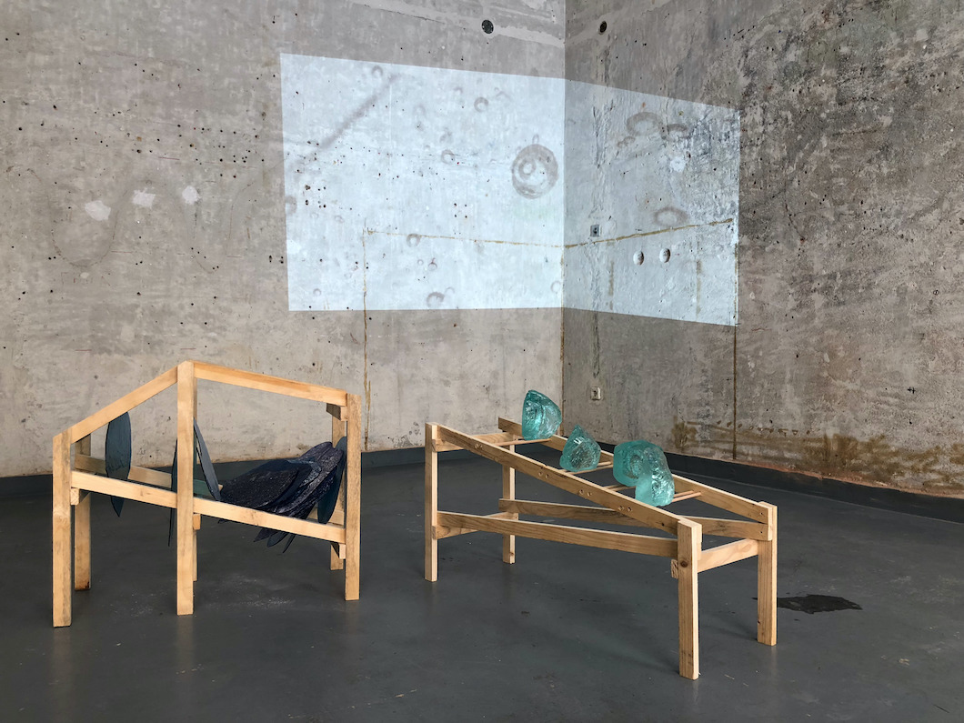 the work of the three artists emphasises characteristics of glass such as materiality, audibility and fluidity with the use of generative sound design, stop-motion animation and object making.