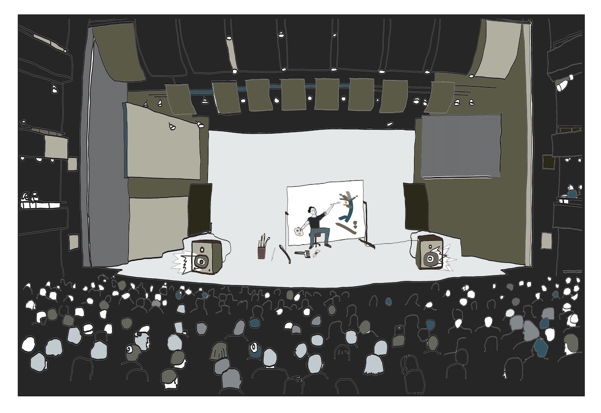 a painter making music by painting. a computer vision algorithm transforms colors, shapes and vectors into musical data.