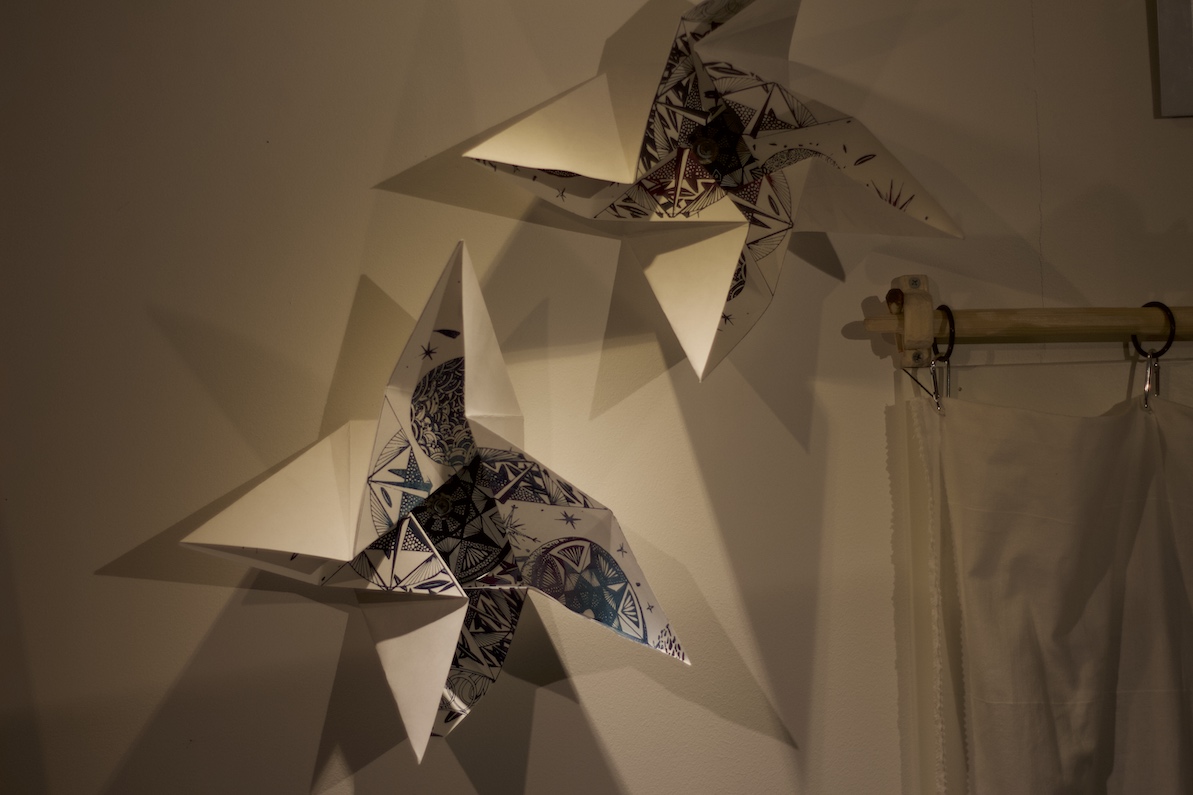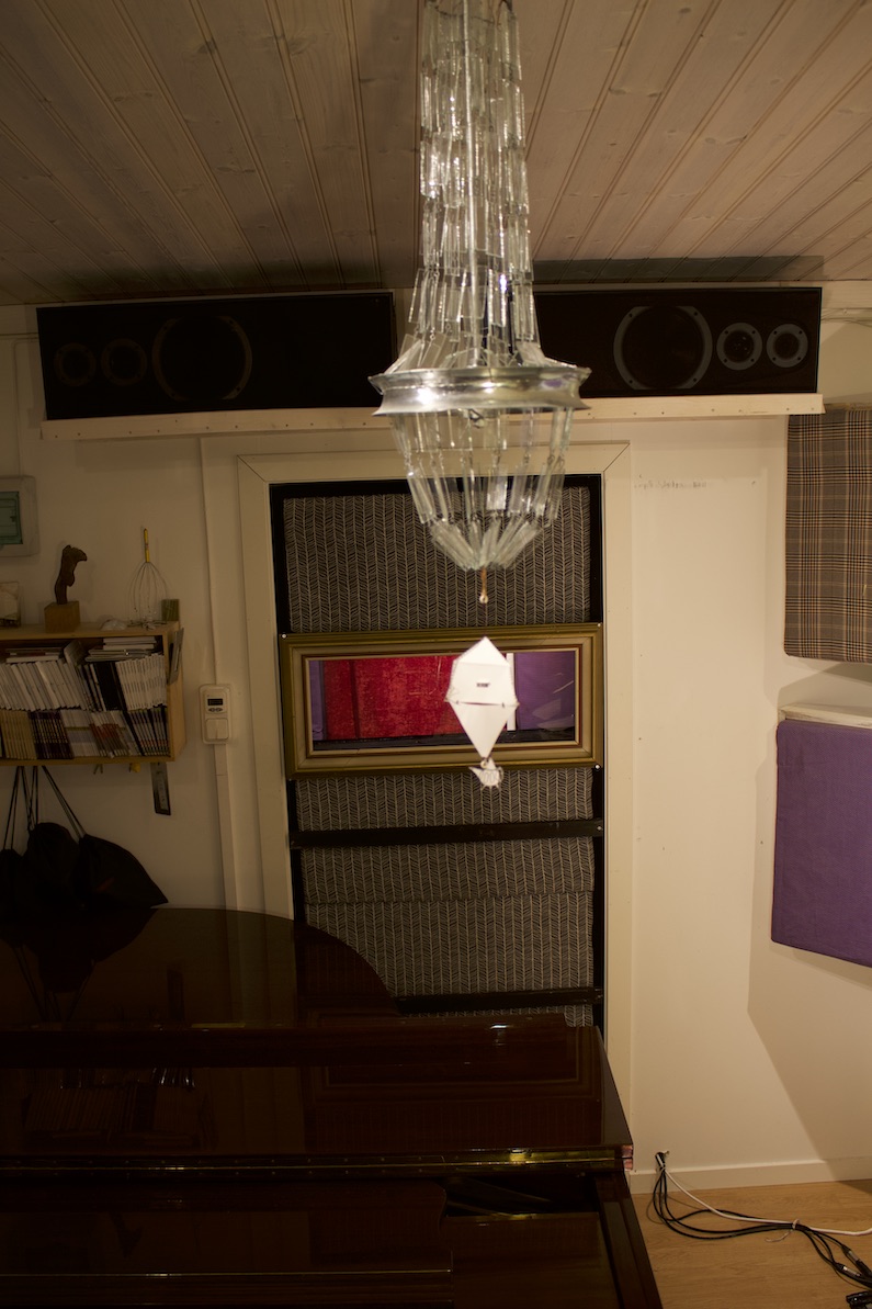 sound traps: mineral wool, cotton, wood frame. postcard sized posters from earlier projects.